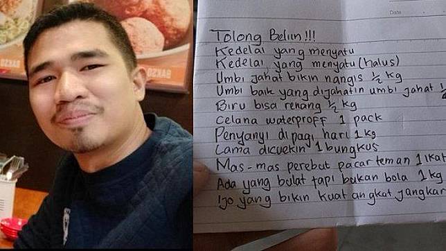 Ketika menyuruh suaminya belanja ke pasar, istri Ramdani memberi secarik kertas berisi daftar barang yang harus dibeli.